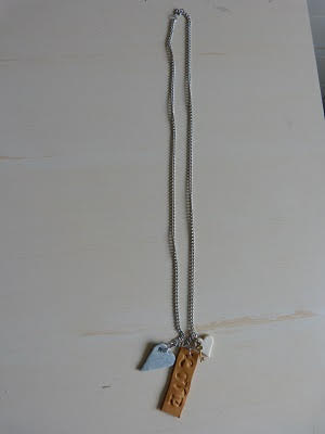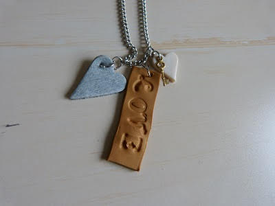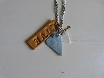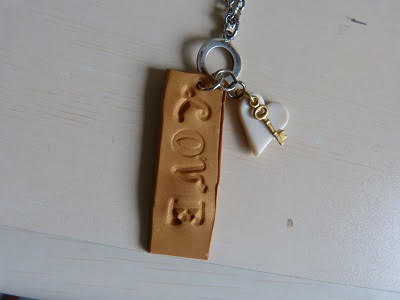 Necklace 3: Handmade Sculpey clay heart and LOVE “charm” and small key charm.