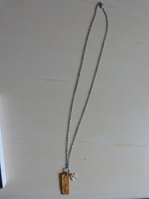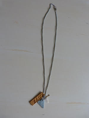Necklace 2: Two handmade Sculpey clay hearts and LOVE “charm” and one tiny gold key charm.