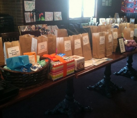 Anything! In previous years, attendees have donated gift baskets, beauty products, gift cards, books, food items, DVD box sets and handmade crafts such as jewelry, scarves, quilts, pottery and framed prints.