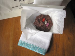 - The roomy, 100% cotton Public Market tote measures approximately 15 X 14 inches and has long handles to better fit over your shoulder. (The handles are long enough to fit generously on my shoulder over my wool coat.)