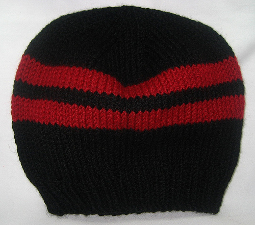 #1: Knit from a machine washable wool blend, this hat is mostly black with two deep red accent stripes for style.