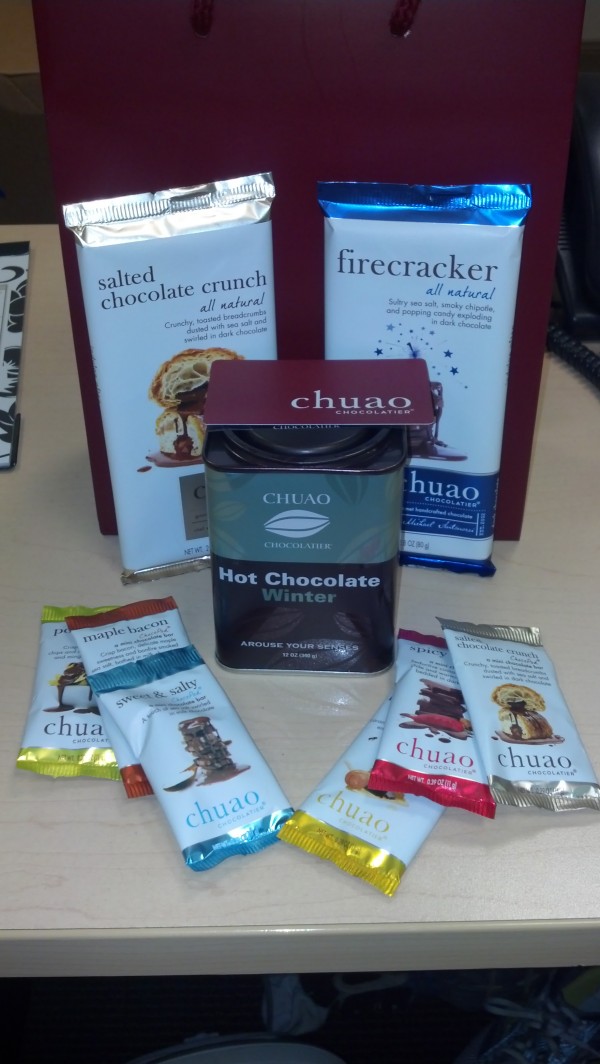 ANOTHER bundle of chocolatey goodness direct from Chuao’s home location in San Diego! This pack features Chuao’s super popular (and oh so interesting!) Firecracker Bar and their “grown up Crunch bar”, the Salted Chocolate Crunch Bar, along with a tin of their fantastic Winter hot chocolate that features all the spices that go along with snow, roaring fires and snuggly sweaters. Last but not least, an assortment of Chuao’s Chocopods will let you taste their other fantastic flavors without committing to a whole bar.