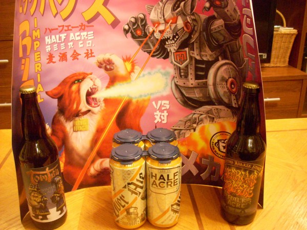You get: a four-pack of Half Acre’s year-round brew, Over Ale, a right-on-the-money brown ale that is Chris’s favorite of the year-round brews, as well as two 22 oz. bombers: Tomten Winter Ale, and Hearths Ablaze Stout. As a bonus, you’ll get a limited edition print to promote Half Acre’s gone-in-a-heartbeat Imperial Stout, Big Hugs. This is the four year of Big Hugs in a row, and the poster features the misunderstood kitty-monster’s most fearsome match-up yet: Big Hugs vs. MechaHugs! All items feature art by the amazing Chicago artist Phineas X. Jones. (Check the other auctions for a few of Phineas’ posters!)