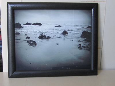 8×10 framed black and white photograph of the Pacific Ocean taken by Lisa-Marie on Moonstone Beach near Cambria, CA.