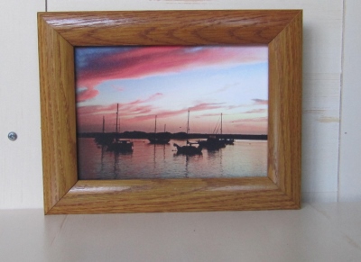 Photo printed on Epson Ultra Premium matte paper and cut to fit frame. Frame is 1½” wide light wood, slightly irregular at the corners, and does not have any hardware for hanging.