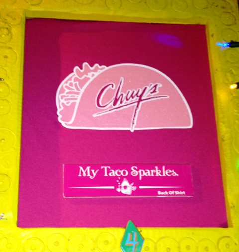 Do you want to feel pretty? Have a little sass in your step? Adorn your bod with this hot pink t-shirt from Chuy’s. Chuy’s started in Austin in 1982 and has been serving up fantastic Mexican cuisine ever since. Suzanna calls their fresco salsa “Valhalla”.