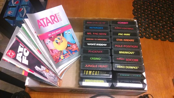– 20 Atari compatible games with game manuals, including Frogger, Pac-Man, Ms. Pac-Man, Asteroids, and Pole Position