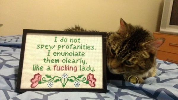 A little cross-stitched motto, lovingly hand-made for you by Stacey. Comes pre-framed in a basic black frame that you can either stand up or hang on the wall, or will fit pretty much any 5×7″ frame you care to get for it.